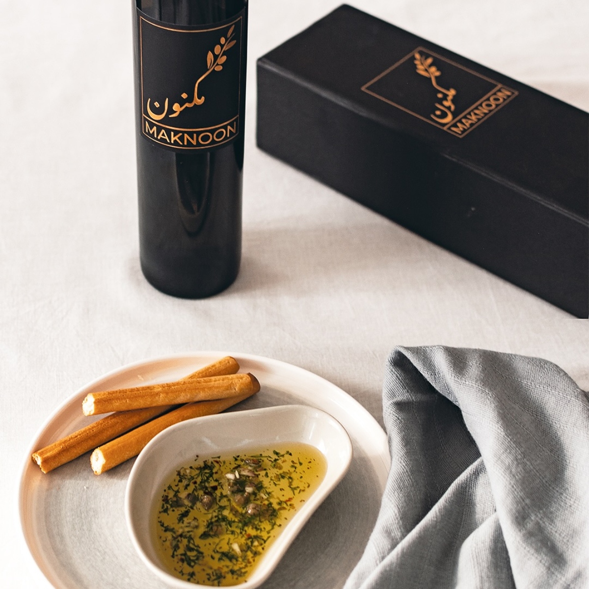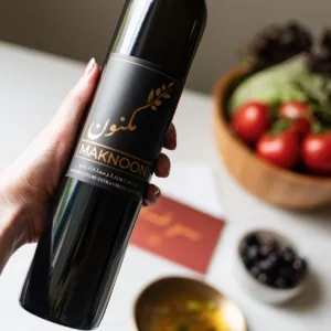 Maknoon’s Lebanese olive oil is light on the palate yet full of character. It opens with fresh herbal notes, followed by a gentle bitterness that adds complexity, and finishes with a subtle fruity and peppery touch. Smooth in texture and well-balanced, it brings a refined elegance to every dish it touches.