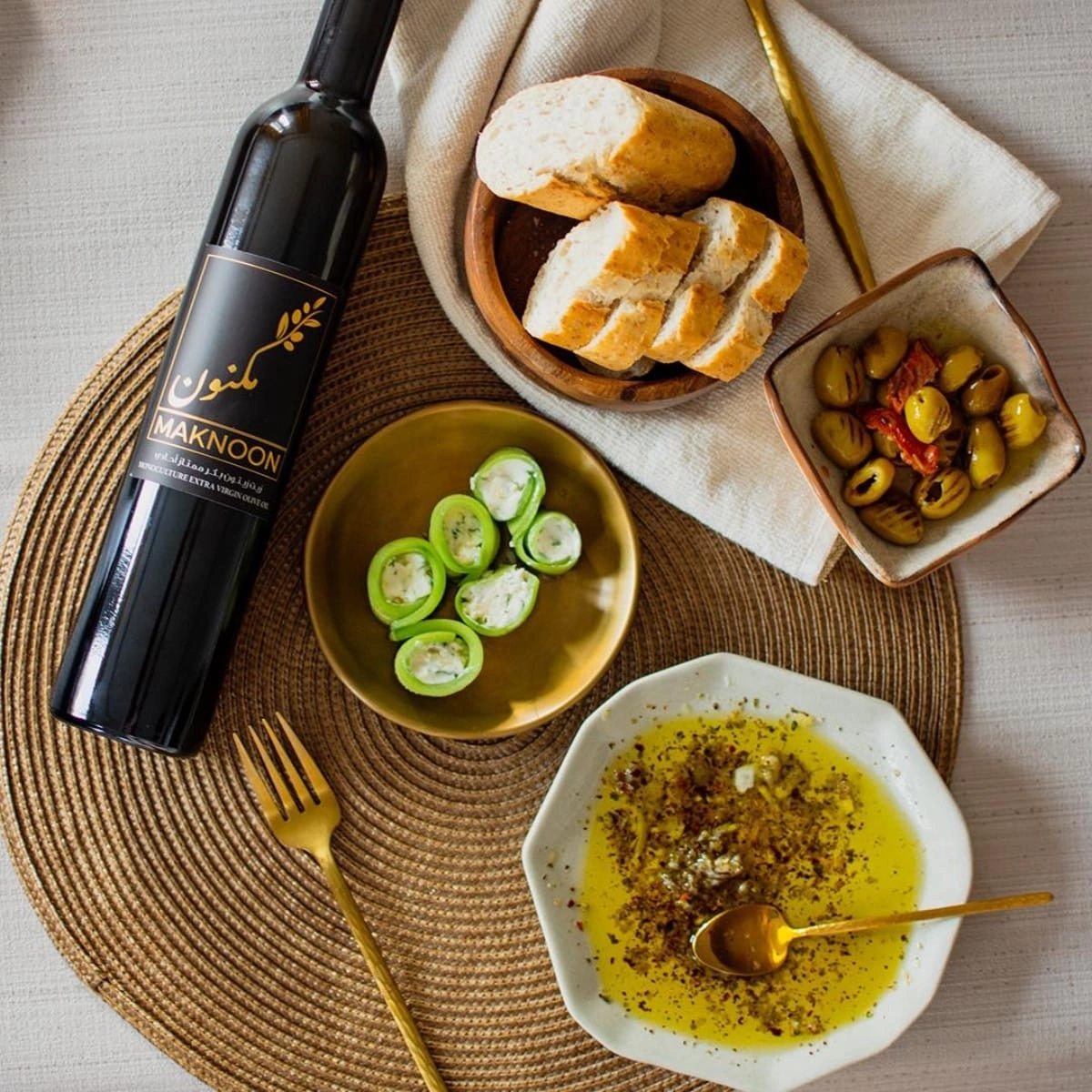 Maknoon’s Lebanese olive oil is a versatile and delicate ingredient that enhances both traditional dishes and everyday meals. Here are a few ways to enjoy it: