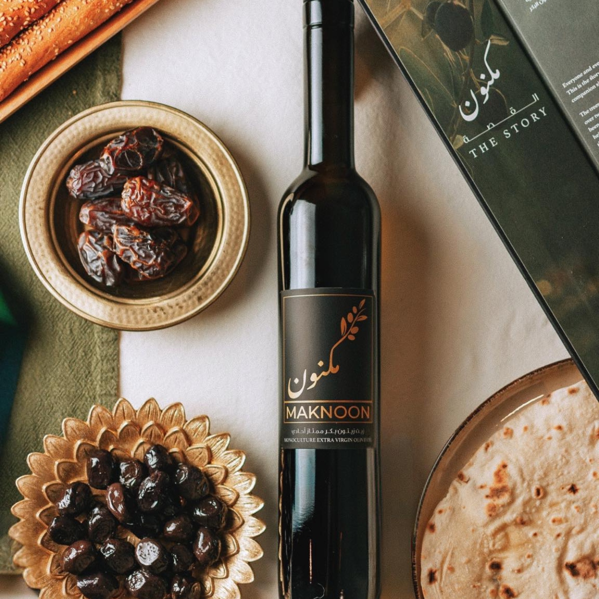 Maknoon’s Lebanese extra virgin olive oil is an authentic expression of Levantine agricultural tradition. Sourced from centuries-old olive trees that grow in elevated terrain and thrive solely on natural rainfall, this oil captures the richness of its origin in every drop.